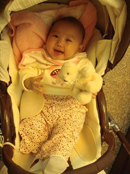 上個禮拜開始哭的時候會發出 "媽~媽~~" ..."媽~媽~~"..., 可愛極了!