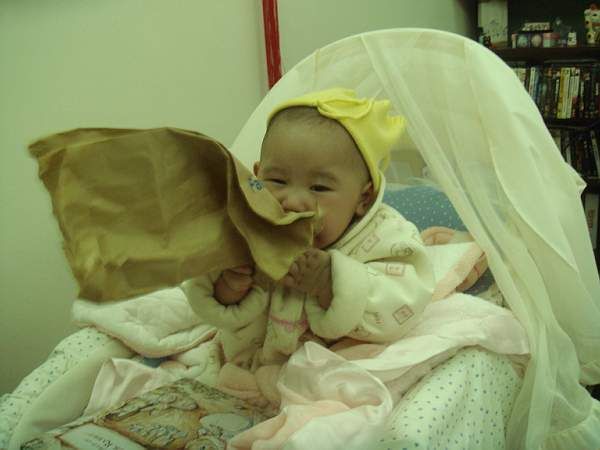 媽媽看到馬上照張相, 再趕快把紙袋拿走!