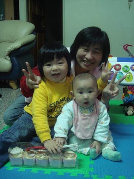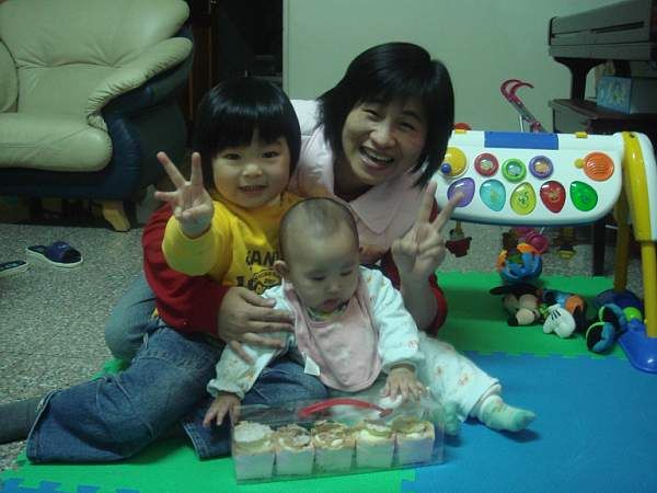 今天是 Anna 七個月生日, 媽媽買蛋糕一起分享給奶媽和Apple