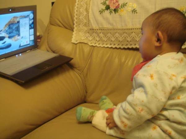 爸爸說話時, Anna 會撲向電腦耶!