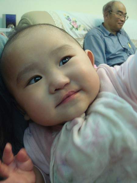 爺爺高聲談論政治, 琳琳都聽得津津有味, 呵呵笑, 好像很懂耶!