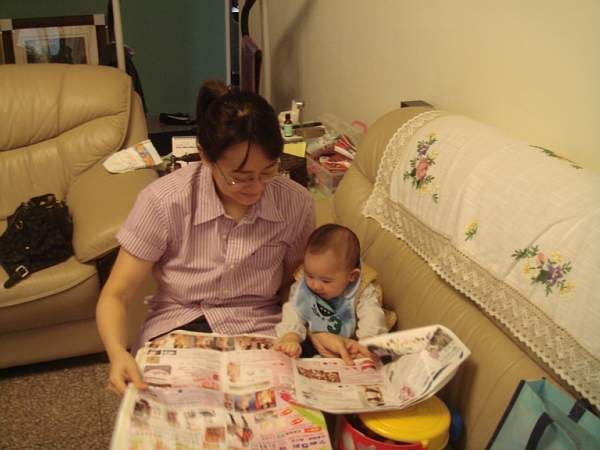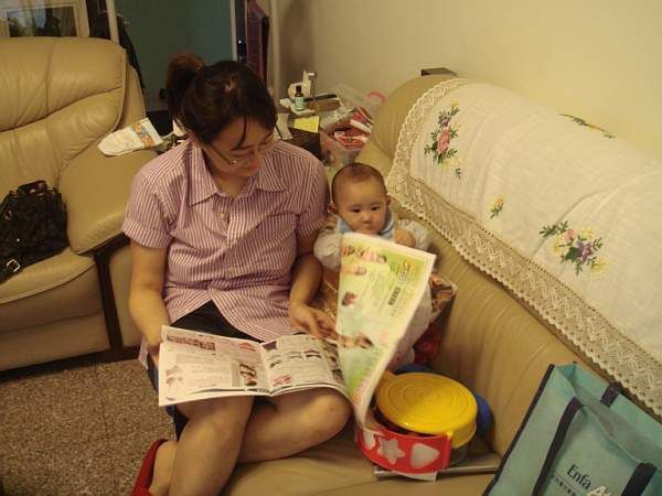跟媽媽一起看產品DM, 活像個小懂事, 小幫手