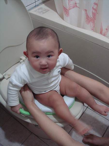 琳琳很厲害唷, 才七個月就喜歡在馬桶上便便
