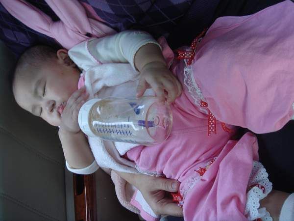 回家的路上抱著奶瓶睡著了, 好甜 =)
