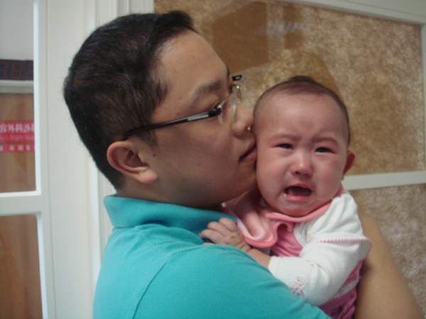 琳琳不喜歡被護士弄來弄去 , 在爸爸身上大哭