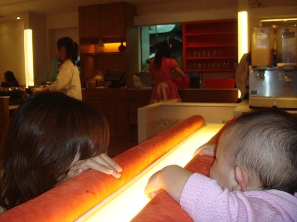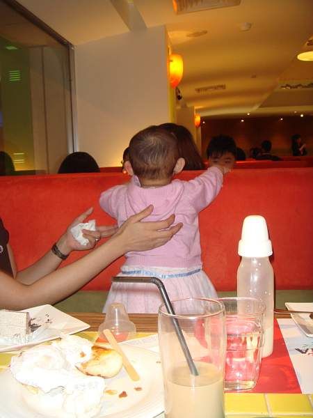 4/12 晚上去吃義大利麵, 大琳和大琦阿姨不知為什麼, 看到小琳在就很緊張, 不知道在趕甚麼, 拼命塞拼命吃, 五分鐘就吃完了 ,(通常這種飲料蛋糕吃到飽的店應該要慢慢吃坐很久才是)