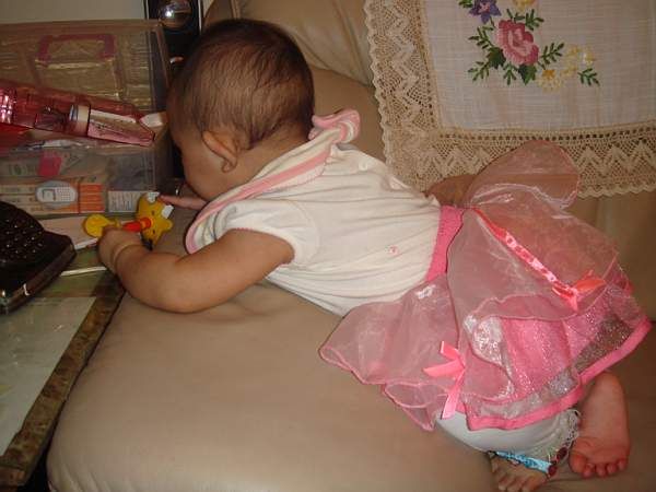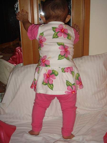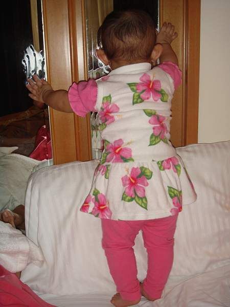 20080414 琳琳好愛站, 媽媽不准琳琳站, 要她多爬, 媽媽想言教不如身教, 身體力行, 老來娛女, 自己爬來爬去, 結果琳還是不領情, 照樣動不動就愛站