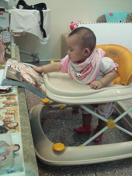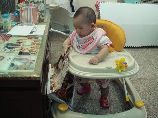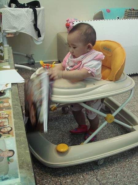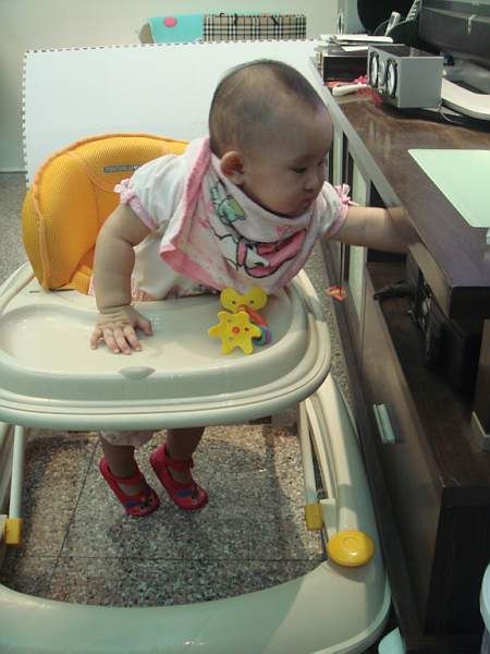 跟奶媽借學步車在家裡走走, 琳琳東摸西摸很好奇唷