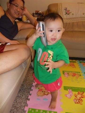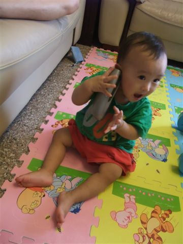 在國外的奶奶打電話來, 琳琳說話說得好高興, 神情真得意 ^^, 不過...電話拿反了...
