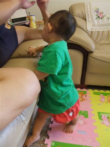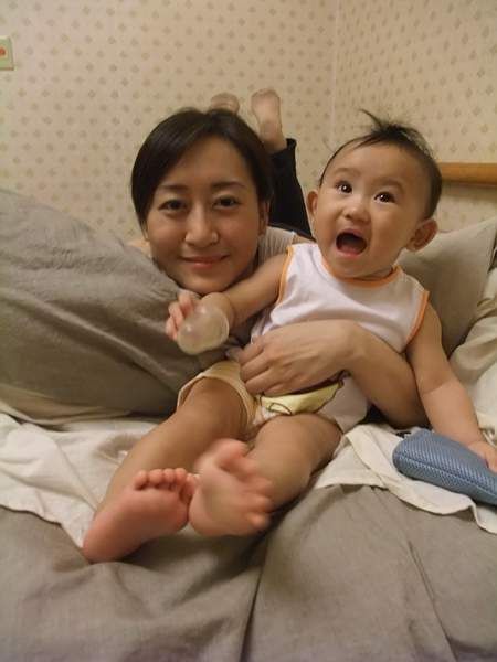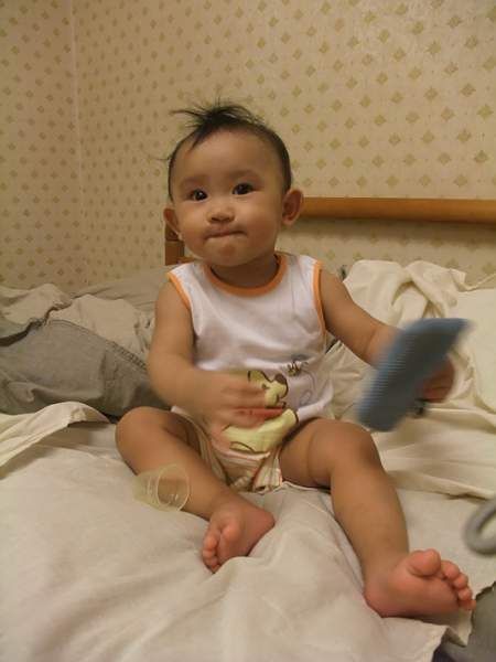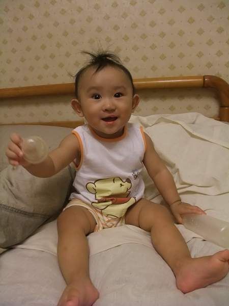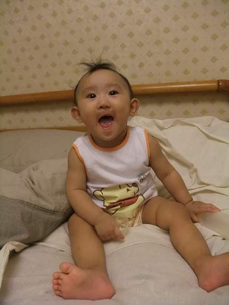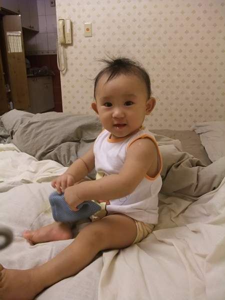 今晚我11 點才睡唷, 一直在床上耍寶, 把爸媽給累壞囉~~