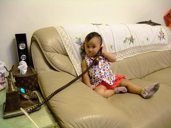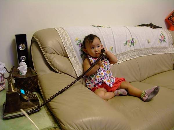 Anna 彈一彈, 又跑去打電話給爸爸"哇啦啦啦" 訴苦, (想像電話的另一端有人啦) 好好笑!!