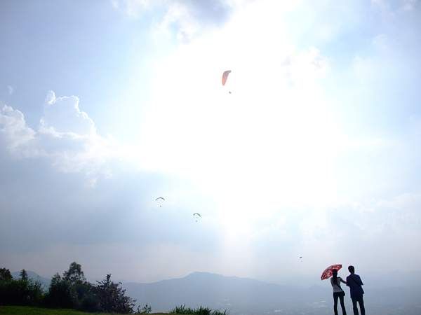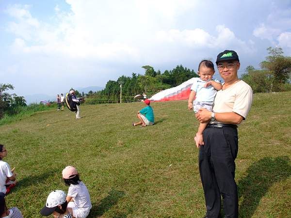 爺爺抱Anna 看天空五顏六色的飛行傘在埔里的天空中自由地飛翔~