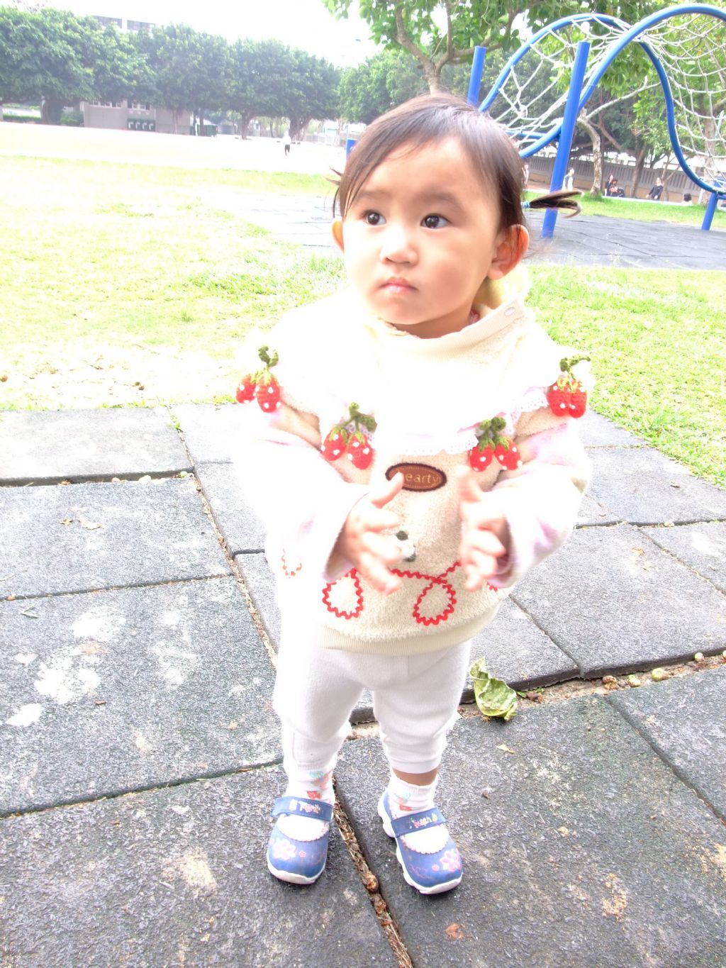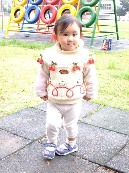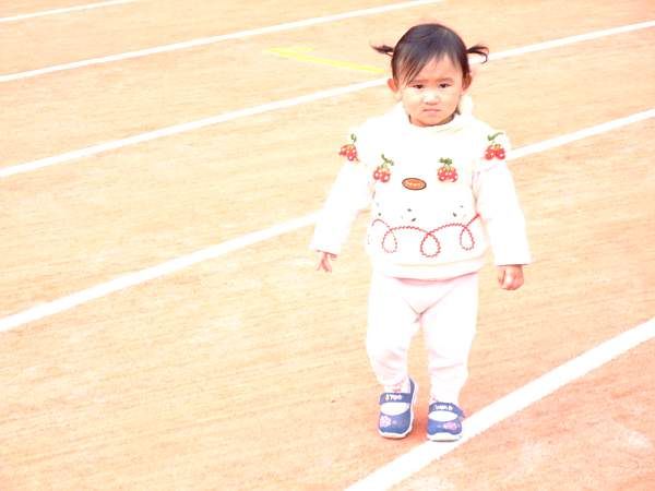 Annabelle 走了一圈操場, 好累唷, 臉上露出運動員跑完休息的嚴肅表情 ^^