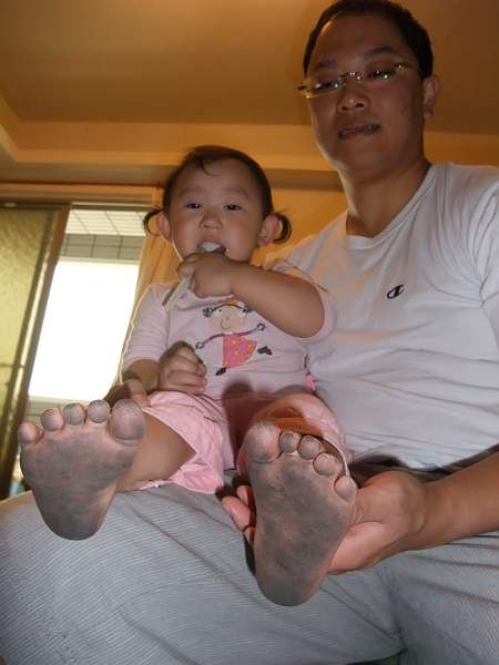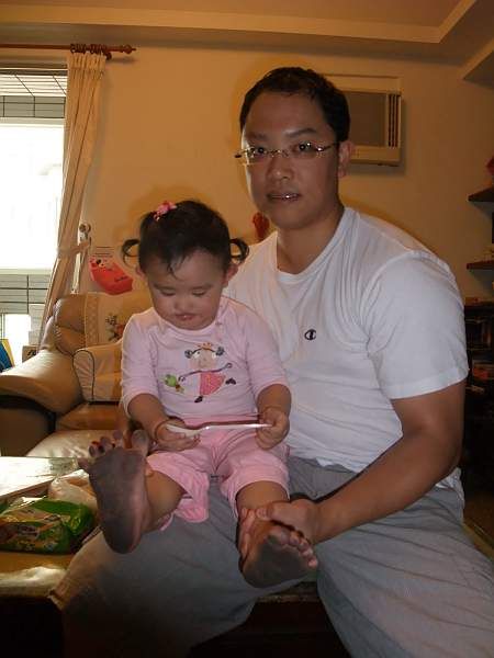 尤其是小腳給爸爸聞的逗趣照片! 聞了一腳還不夠 , 一定還要爸爸聞另外一腳 , 哈哈!