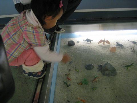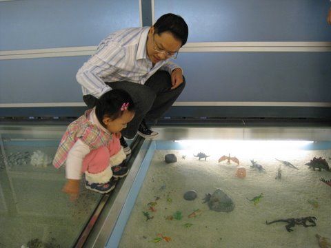 玻璃下面有好多小恐龍唷