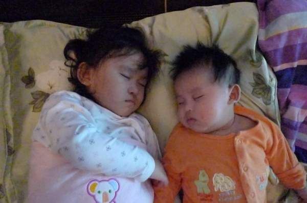 看她們倆相擁而睡模樣好可愛, 就像天使一樣.