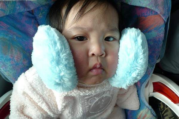 媽咪好討厭唷, 怕我冷給我帶那麼大的 ear puff~~