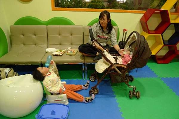 因為半夜沒人, 我們全家霸占遊戲室當成VIP休息室, 好大的空間可以玩