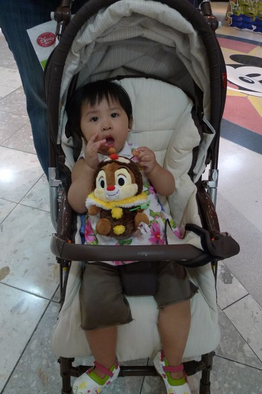 在迪士尼商店前面買了Chip & Dale 奇奇蒂蒂, 姐姐發音發成 "知本六"