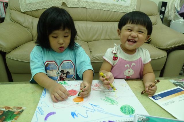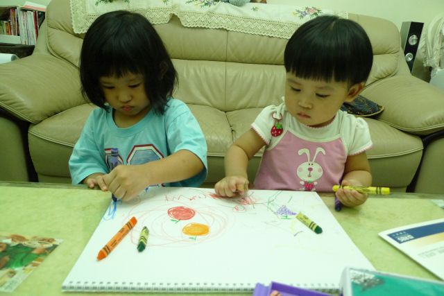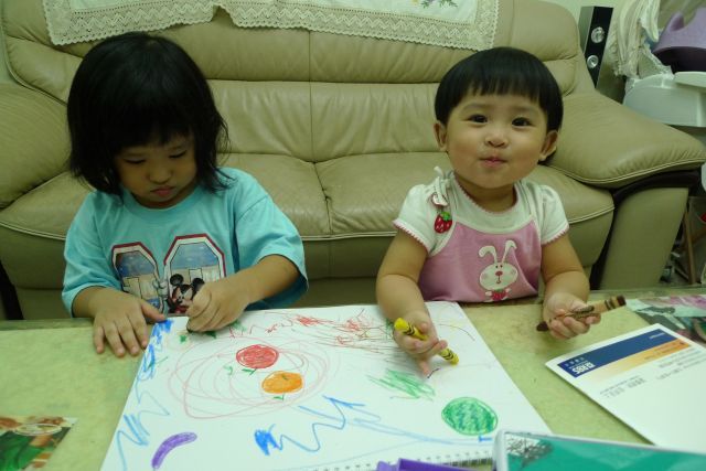 跟姐姐分享蠟筆畫畫好好玩..