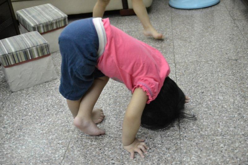 又來了, 最近最愛的地板動作, 腳還會翹起來耶!!