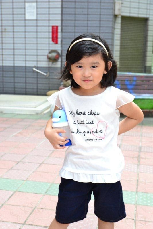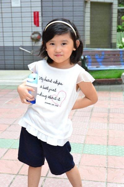 小琳身穿從日本東京帶回來的 COMM CA ISM , 上面寫著: " my heart skip a beat just by thinking of you..."