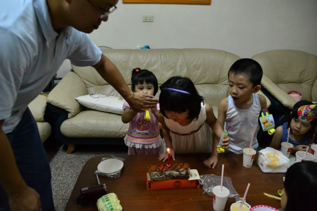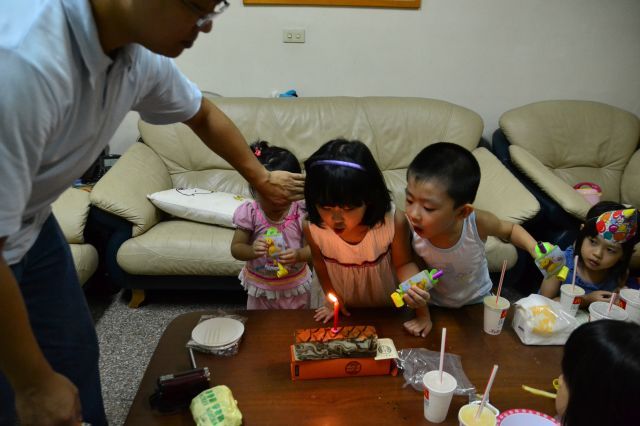 爸爸為了怕肥魚吹熄了小琳的蛋糕, 還必須出動怪手遮住小魚的嘴, 好好笑!
