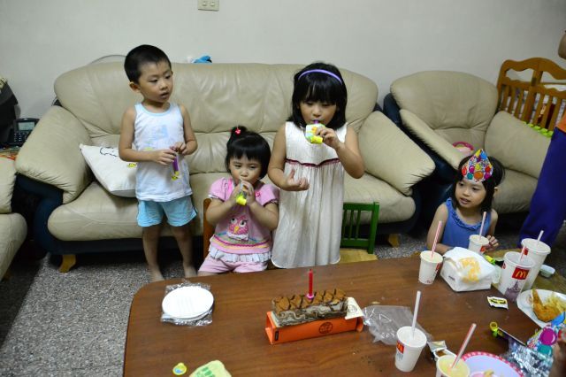 結果蛋糕蠟燭還是撐不到歌曲最後就被吹熄了...