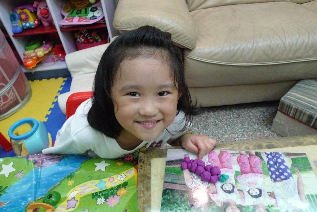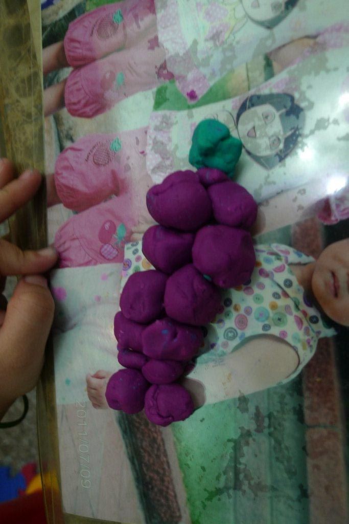 媽咪只是給Anna看一眼紫色黏土的圖片, 結果她才看一眼就自己做的一串葡萄