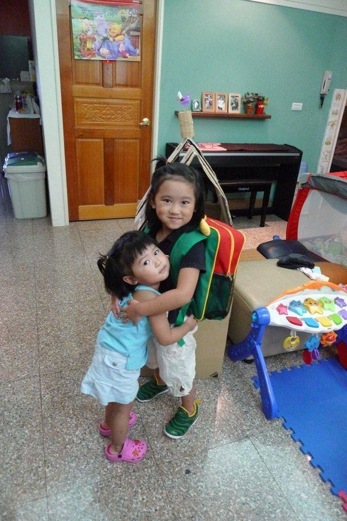 上學前妹妹抱著姊姊打氣, 姊妹都好棒!