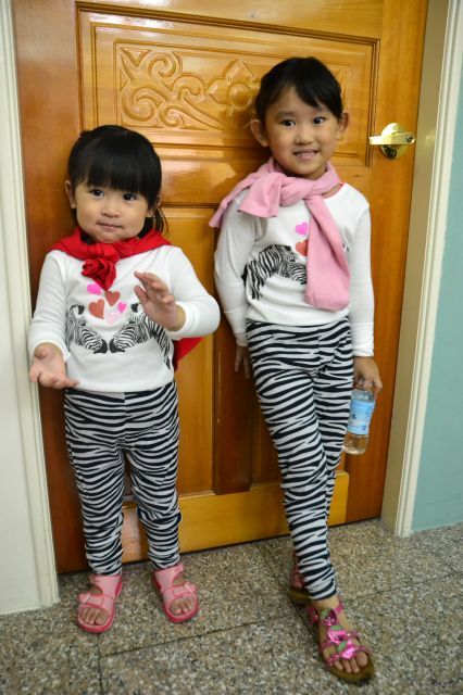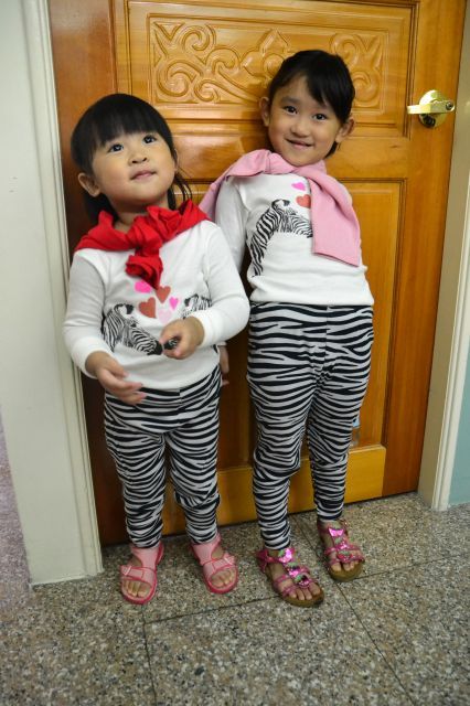 照相前姊妹互相調整對方的衣服, 好專業唷~!
