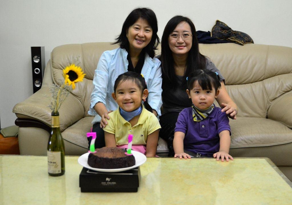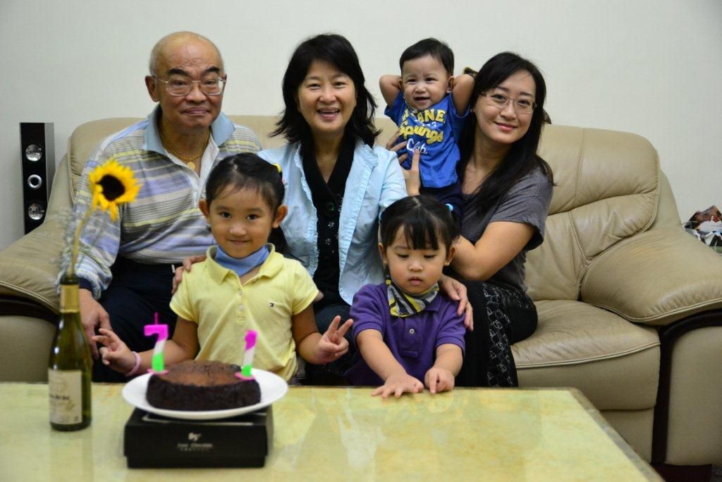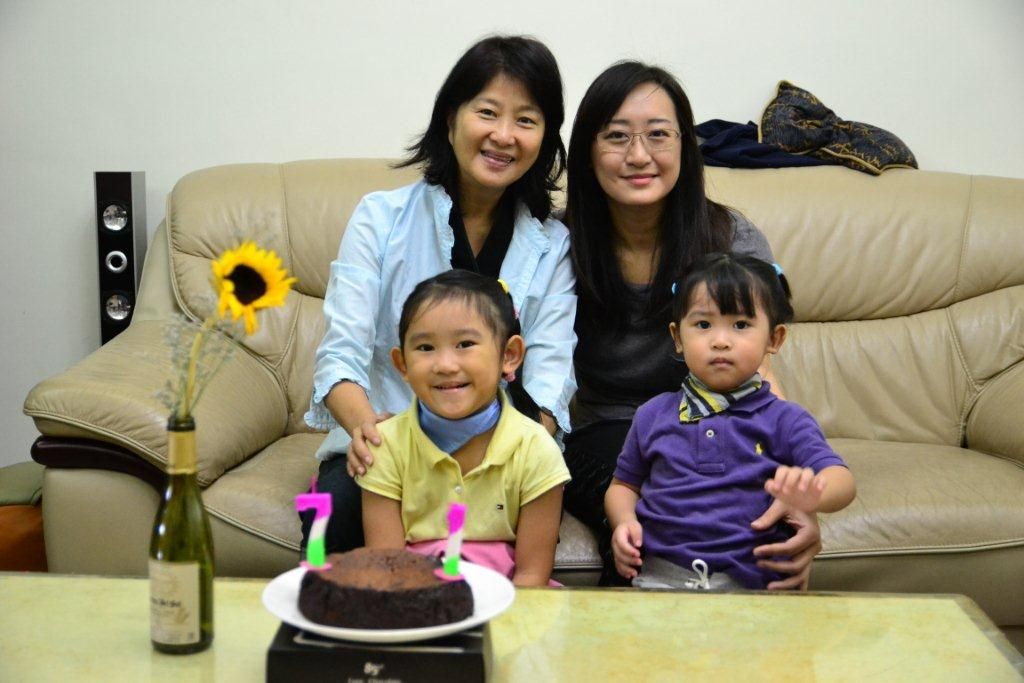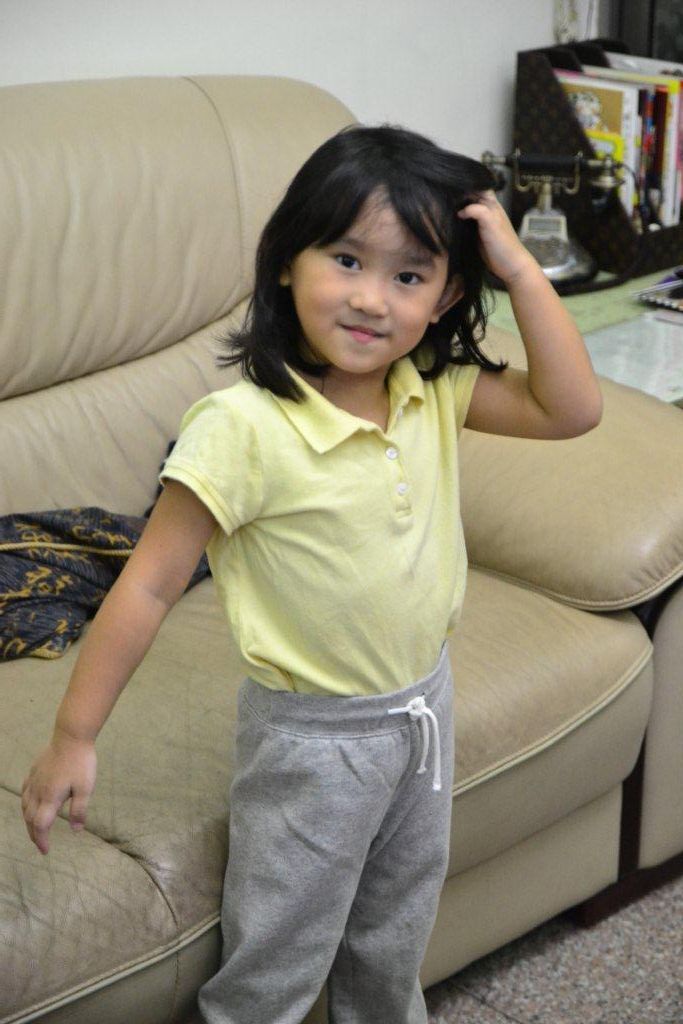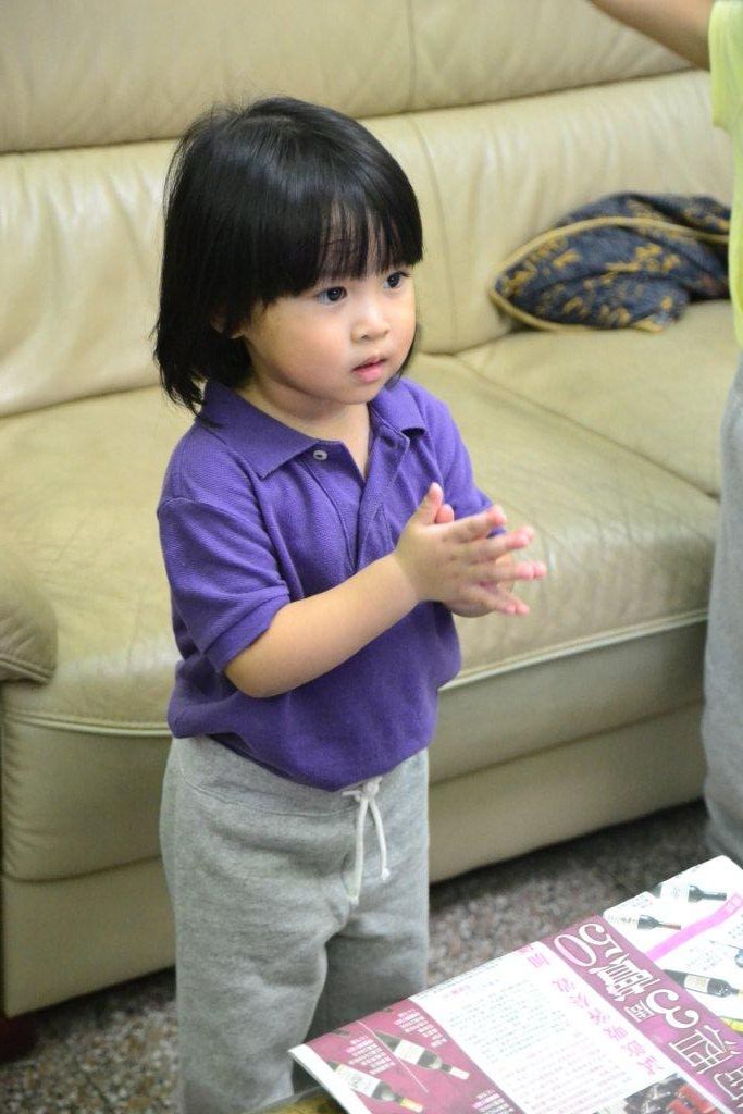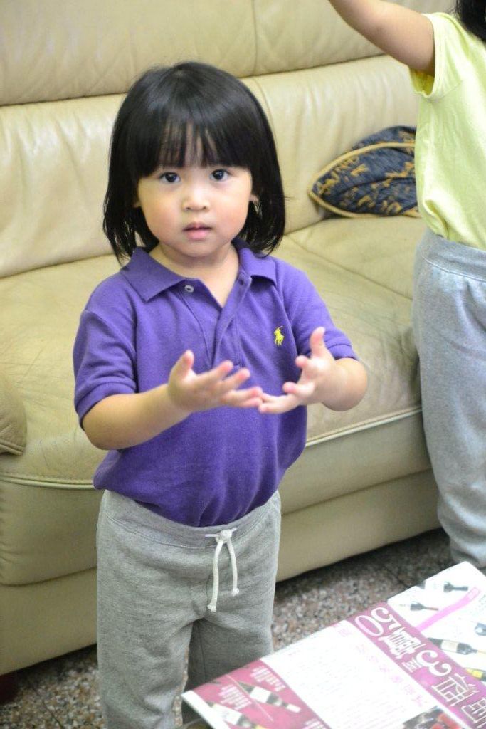 穿姊妹裝要排排照站好照相 (謝謝姑姑送紫色polo!)