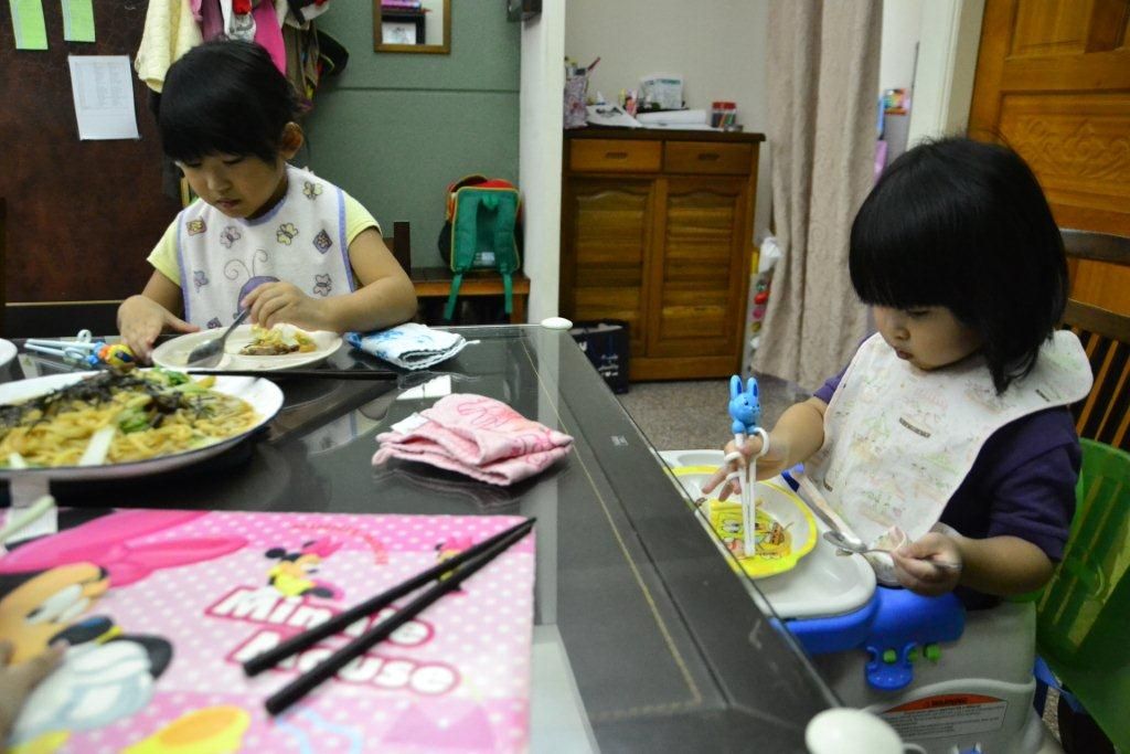 兩個人都會用兒童筷唷, 東方人的發明真棒!