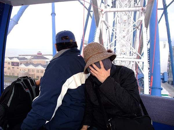 媽媽坐摩天輪, 不敢張開眼睛的照片好好笑! ^^