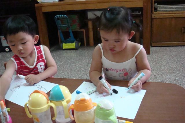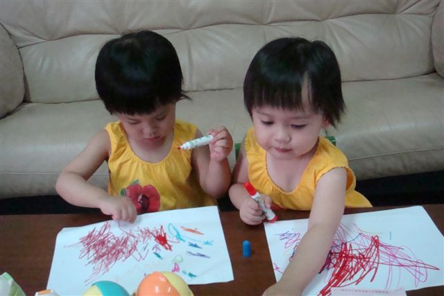 雙胞胎公主也陪我一起上塗鴉課